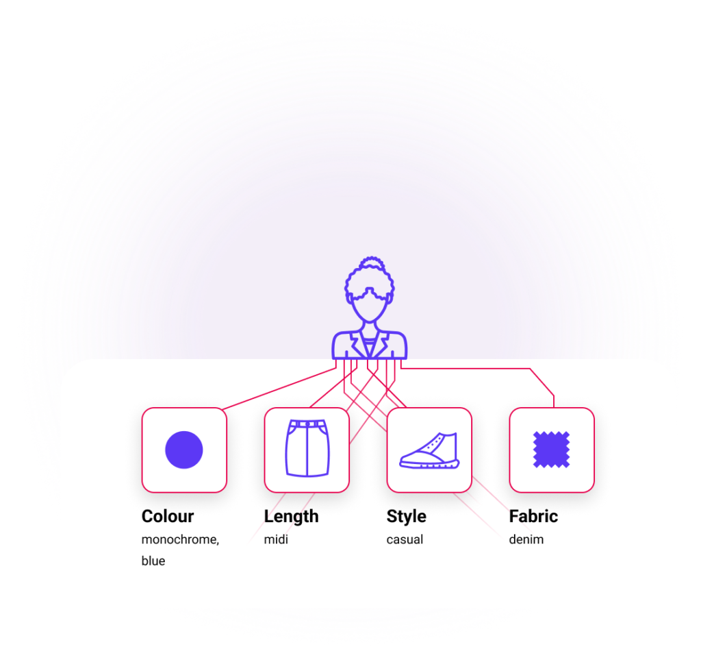 Right from the first click, our AI extracts fashion specific information from the garments they interact with and compiles it into a unique shopper profile.